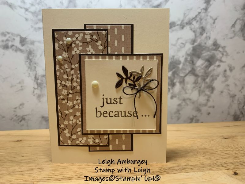 The above measurements are for the original card. It you want to make the stepped-up version, the card base is Early Espresso cardstock and then (2) pieces of 4 x 5-1/4 Very Vanilla cardstock for the front and inside panels.