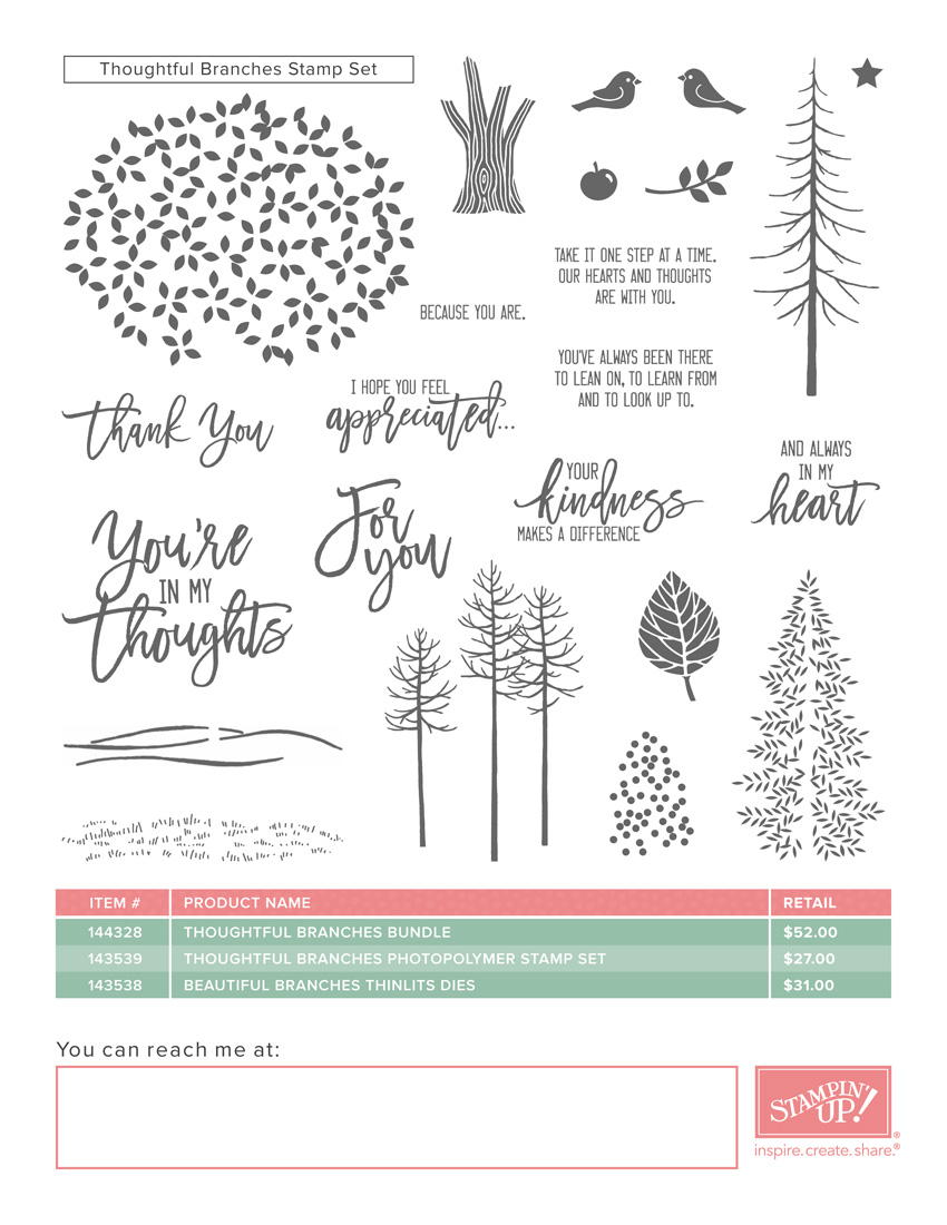 Stampin' UP! will be releasing a brand new limited edition stamp set and matching thinlits die set called "Thoughtful Branches" which will be available to order starting on August 2, 2016, and while supplies last! Here is a sneak peak of this beautiful bundle.